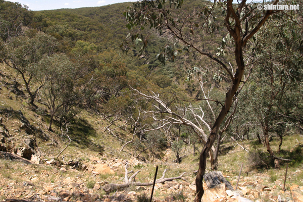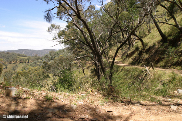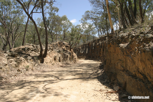 If you look carefully towards the right about 20 minutes into the Bridle Track you come up to the closed off section of the original Bridle Track that the gold miners of the 1800's used to get to Hill End. Travel is too rough and dangerous to go through there, but you can walk through it at the top of Hawkins Hill Lookout.